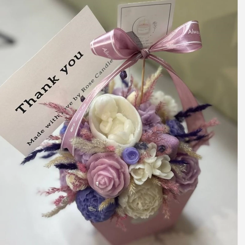 باکس گل سیسمونی رنگ بنفش و صورتی و سفید با باکس صورتی یا بنفش بدون کاغذ دورپیچ ارسال فقط به تهران و کرج با اسنپ یا تحویل حضوری