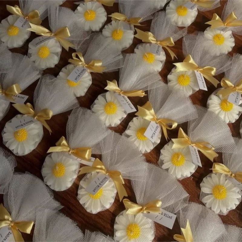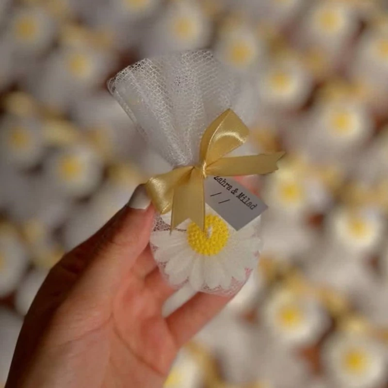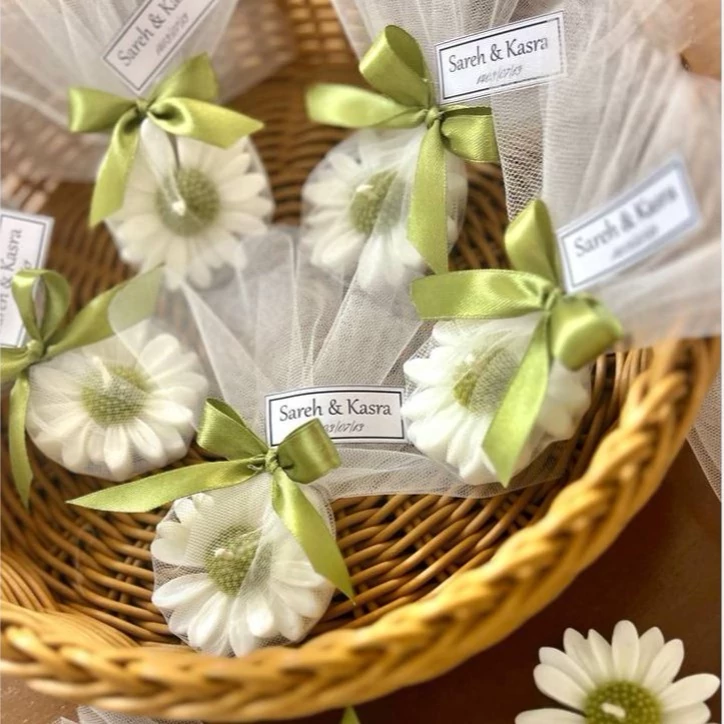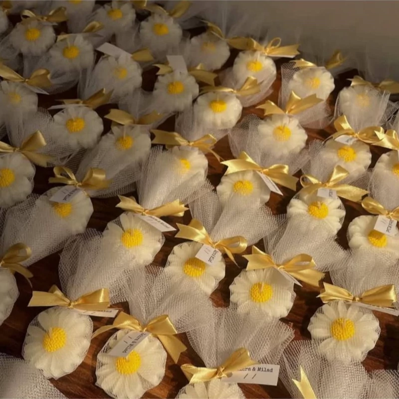 گیفت بابونه قابلیت تغییر رنگ دارد برای دادن اسم و تاریخ عروسی در گفت و گو با ما در ارتباط باشید هم با تور ساده هم با تور پفکی